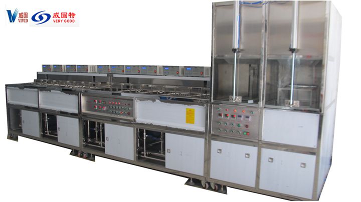 功能光學(xué)薄膜超聲波清洗機深圳威固特VGT-1009FH光學(xué)超聲波清洗機,設(shè)備共有10個功能槽,配置有噴淋系統(tǒng)、循環(huán)過濾系統(tǒng)、自動恒溫系統(tǒng)拋動系統(tǒng)、超聲波清洗系統(tǒng)、拋動系統(tǒng)、頂部框架系統(tǒng)、熱風(fēng)烘干系統(tǒng)(百級FFU)、定時系統(tǒng)等。