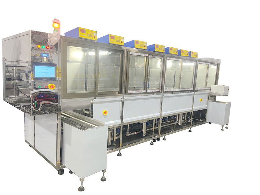 優勢:工件通過機械臂或傳送帶自動完成 “清洗 → 漂洗 → 干燥” 的全流程。這完全避免了人工搬運帶來的效率低、磕碰風險、以及不同操作人員可能造成的清洗效果差異。